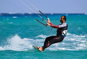 Le kitesurf est un sport nautique éolien qui utilise un cerf-volant et une planche pour se propulser sur l'eau. Malgré son nom, il n'est pas nécessaire de faire du surf pour le maitriser, le kitesurf peut être pratiqué sur des lagons miroitants, ainsi que sur des mers agitées ou de grosses vagues.