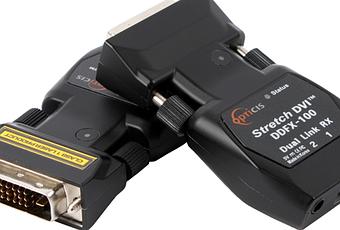 Pour étendre le DVI Dual Link, Opticis utilise toujours sa technique imparable et ultra pratique : le connecteur extendeur. Le DDFX-100 se présente comme une grosse prise DVI d’un côté et une entrée fibre de l’autre. Niveau installation, cela facilite la vie. Il n’y a pas besoin de passer le gros connecteur DVI dans les gaines, mais seulement la fibre optique. Dans le cas du DDFX-100, ce sera une double fibre multi mode au format LC. Opticis assure un transport du DVI sur près de 500 mètres sans perte ni compression.