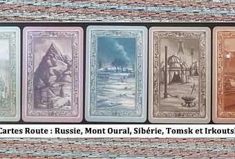 Il y a 5 types de cartes Routes : Russie (Moscou), Monts Oural, Sibérie, Tomsk et Irkoutsk. Mélangez chaque paquet séparément et placez-les sur les emplacements prévus à cet effet (code couleur) du plateau de jeu.