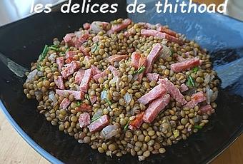 J'aime beaucoup les lentilles et cette version avec du bacon a ravi toute la famille, même Thomas qui n'en mange pas très souvent.