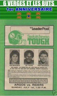 Votre classique de ce matin date du 26 novembre dernier, suite à la victoire des Roughriders à la Coupe Grey. L’imaginatif ami Pick s’est dit que les champions de la CFL devraient finalement lancer un défi à la NFL…REGINA, SK -- À peine remis des festivités qui ont suivi leur victoire sur les Blue Bombers de Winnipeg lors de la finale de la 95e Coupe Gay, les joueurs des Roughriders-pas-d’espace-entre-Rough-et-Riders ont rencontré la presse ce matin pour faire le point. Bien que la plupart des joueurs ait simplement remercié les partisans de leur appui et félicité les Winnipeg pour leur beau programme, certains étaient nettement plus cocky et souhaitaient se faire entendre.