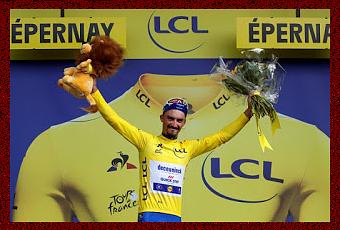 Dans la quatrième étape, entre Reims et Nancy (213,5 km), victoire au sprint de l’Italien Elia Viviani, équipier de Julian Alaphilippe. Avec le Français en jaune, quelque chose a changé sur le Tour, qui en avait bien besoin après des années de héros virtuels, monétisables…Nancy (Meurthe-et-Moselle), envoyé spécial.