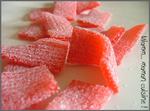 Ce cake est en fait un cake... raté. Raté car ce n'était vraiment pas le goût auquel je m'attendais. Le Sweet Tagada Cake est chaque fois un vrai succès, tout comme le Four C (Crusty Carambar & Chamallow Cake). Je me demandais quel autre bonbon se prêterait à la transformation. En me balladant au rayon des confiseries, les bonbons qui me plaisaient le plus étaient les bonbons au goût "qui pique". Ceux qui vous donnent presque les larmes aux yeux quand vous les mangés ! Je voulais savoir si on pouvait retrouver ce goût là dans un gâteau.