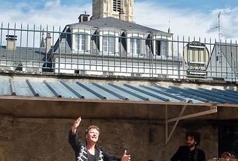 C’est au matin, après l’orage, que la Compagnie du Monde à part présentait Bête Beurk. Une histoire de création du monde. Parce que ça commence avec le commencement, et que le commencement, ça pourrait simplement être joli. La terre est plate, elle a deux faces, comme les disques que les jeunes générations ne connaissent pas mais que leurs parents et leurs grands parents ont bien connus. Ça commence déjà avec le temps qui passe, et avec le temps qu’il fait. Ça commence avec la Face A, un monde de paix et de bonheur où naît une princesse. Mais ce n’était que la Face A. La Face B, c’est tout le contraire : c’est la boue et un monstre. Comment on y accède : si on est le conteur, il suffit de retourner le disque, ou d’en faire le geste ; si on est un des personnages, il faut passer par le trou central. Danger ! Espoir ! Musique. Frédéric David, le conteur, et Jeff Manuel, le musicien, nous font tourner avec leur histoire et nous nous surprenons à scander avec eux le chant de la Bête Beurk. Et l’orage s’est (provisoirement) éloigné.