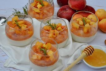 Un joli dessert de saison bien frais aux saveurs de la Provence : abricots, miel de lavande et romarin.