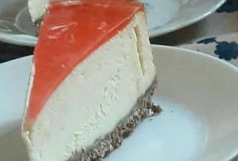 Enfin étalez le coulis sur votre cheesecake, coupez et servez pour votre dessert ou goûter et bon appetit à tous.