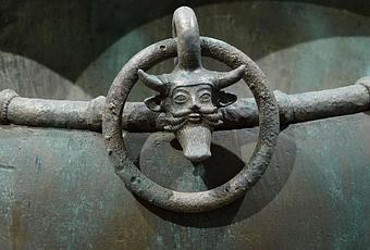 La pièce maîtresse est un extraordinaire chaudron en bronze dont les anses sont ornées d'une tête du dieu-fleuve Achéloos, reconnaissable à ses cornes de taureau, sa moustache et sa longue barbe. Les influences sont donc aussi grecques, mais également italiennes puisque la technique de fabrication fait plutôt penser à un atelier étrusque !