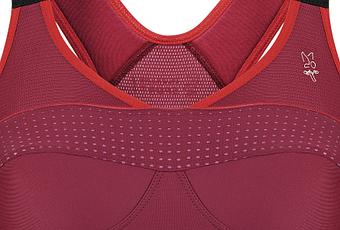 - Une bande de contention renforcée située sur le haut de la poitrine et qui se prolonge vers l’extérieur pour limiter à la fois l’effet rebond et les mouvements latéraux.