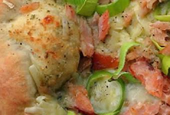 Voila la recette thermomix de la pizza poireaux saumon fumé.