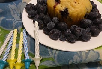 300 غرام دقيق ابيض ، 6 ملاعق كبيرة من زيت الكانولا ،250 مليلتر لبن ، بيضتان ، 80 غرام من السكر البني ، ملعقة كبيرة من خميرة الحلوى ، قبصة صغيرة من الملح ، قشرة ليمونة مبشورة ، 125 غرام توت ازرقطريقة التحضير: