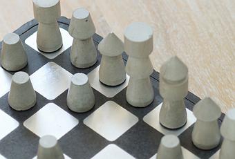 Entièrement réalisé à la main, ECHEC se décline en différents coloris, mais nous restons fans de la version la plus brut possible. Son plateau est également réalisé en béton, permettant d’accueillir sur un lit de feutrine les 32 pièces qui composent le jeu.
