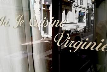 C’est le restaurant qu’il ne faut pas manquer à Chinon. Dans une petite rue tranquille du centre-ville, à deux pas de la Vienne qui s’écoule paisiblement, quelques chaises et tables dehors aux beaux jours et une petite salle accueillante, fraiche et sobre. Au fond, dans sa cuisine minimaliste, s’active avec grâce Virginie Thénot. C’est d’ailleurs gravé sur une des vitres : « Ici, je cuisine », signé de son nom. Le message est limpide, pas d’assemblage venant de l’extérieur, pas de sauces ou autres achetées aux divers grossistes en nourritures préfabriquées, ici Virginie est en cuisine et elle aime son métier.