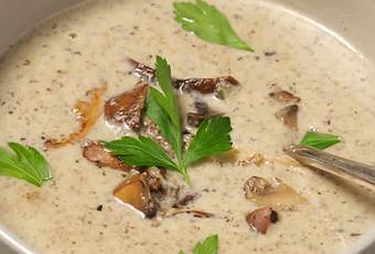 Enfin servez votre soupe avec les champignons réservés et quelques feuilles de persil et bon appétit à tous.