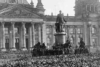 Revenons à 1919. Une révolte communiste éclata à Berlin, profitant de la défaite. Lénine pensait que toute l'Europe allait être gagnée par le virus révolutionnaire. Ce fut une erreur. Ce furent les sociaux-démocrates qui au contraire écrasèrent la révolution, et après l'assassinat de Rosa Luxemburg et Karl Liebknecht, le procès des assassins a été fait par un tribunal spécial avec des peines légères.
