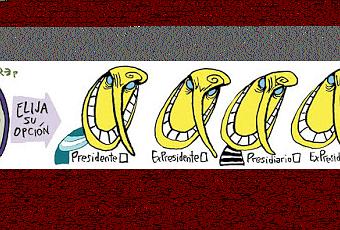 Le "Birrey" (à la fois vice-roi et deux fois roi ou roi au carré) est le personnage caricatural qu'il avait inventé au début du mandat de Mauricio Macri pour le représenter. Il semblait l'avoir presque abandonné depuis un bon moment et il le ressort maintenant. Il a un visage jaune, la couleur de son parti, le PRO. Un grand nez comme Pinocchio, parce qu'il raconte en permanence des bobards. Un sourire carnassier, parce que c'est à l'origine un homme d'affaires, ou plutôt le fils d'un homme d'affaires qui avait davantage de considération pour ses comptes en banque, dont certains dans des paradis fiscaux, que pour le bien public. Et « président », il risque le bagne (presidio)... Après, ça vous amuse ou non, c'est selon votre goût.