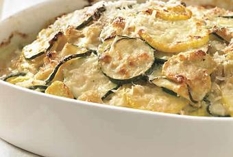 Lavez, coupez les courgettes en rondelles, mélangez les rondelles de légumes avec l'huile puis placez-les dans le plat à gratin.