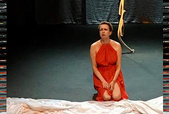 Même si l'intérêt du spectacle ne réside pas du tout dans les comparaisons architecturales que l'on peut être tenté de faire, on aurait tout de même envie de prolonger avec une balade dans la ville que l'on découvre sous des angles peu habituels avec le Jacquemart de l'hôtel de ville (qui en quelque sorte équivaut à la Kaiser-Wilhelm-Gedächtniskirche, l'Église du Souvenir choisie par le réalisateur allemand) ou le Pont d'Avignon (qui évoque le pont Langenscheidt où a été tournée la scène de l'accident) et bien entendu le Théâtre d’André Benedetto de la Place des Carmes (fondateur du off), ou encore une rame de TGV (puisqu'il n'y a pas en Avignon de ruines comparables à celles de la gare d'Anhalt).Il ne faut pas davantage confronter les images mais peut-on voir un hasard dans la couleur rouge de la robe de la comédienne, identique à celle que portait Solveig Dommartin dans le bar où elle rencontre Damiel (Bruno Ganz) ? Il faut beaucoup d'audace pour reprendre les rôles de tels acteurs mais ce qui aurait été quasi impossible à l'écran devient plus concret sur une scène parce que le théâtre est le lieu magique de l'incarnation tout autant que l'endroit où le langage prend toute sa force.