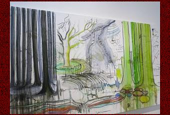 L’artiste a accroché aussi de grandes toiles (à la Douanier Rousseau!) qui montrent la folie végétale de la forêt amazonienne mêlée à des objets du monde humain moderne.