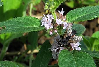 Mentha arvensis (Menthe des champs) : herbacées vivace, odorante au froissement ; tige quadrangulaire terminée par un faisceau de feuilles ; feuilles opposées généralement crénelées-dentées ; calice campanulé, glabre à l'intérieur, à 5 dents triangulaires ; fleurs en faux verticilles étagés le long de la tige, à l'aisselle des feuilles ; 4 étamines saillantes et corolle tubulaire rose à blanchâtre, à 4-5 lobes.