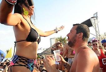 Peu importe, le voilà près de deux étudiantes qui s'embrassent. Le voilà torse nu dans un resort. Le voilà marchant sur Rome. Le voilà coupe de vin au bec, près d'un buffet.