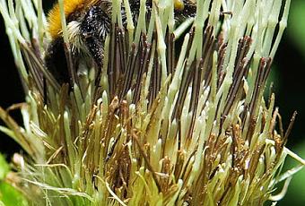Cirsium oleraceum (Cirse maraîcher) : tige dressée robuste, non ailée ; feuilles profondément divisées, embrassant la tige par des oreillettes arrondies ; inflorescence en capitules terminaux de fleurs blanc-verdâtre, dépassés par des feuilles entières, bractées de l'involucre linéaires à pointe étalée. Bords des eaux, fossés, prairies humides