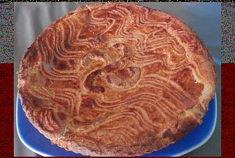 Lustrer le gâteau à l’aide d’un jaune d’œuf et le décorer d’une croix basque.