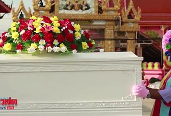 Nonts Khawpod-on, sur sa page Facebook a devant le Wat Thawi Karanant Talat Thairéalisé une publicité vidéo pour le magasin Hia Leng Coffin .. . source vidéo MatichonTV