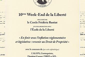 Du 20 septembre 2019 à midi jusqu'au 22 septembre 2019 à midi a eu lieu, à Saint-Paul-lès-Dax, dans les Landes, le 10e Week-End de la Liberté, organisé par le Cercle Frédéric Bastiat, en collaboration avec l'École de la Liberté et avec le concours de: