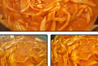 - Ajouter le coulis de tomate, saler et poivrer et laisser mijoter 20 minutes en remuant en régulièrement.