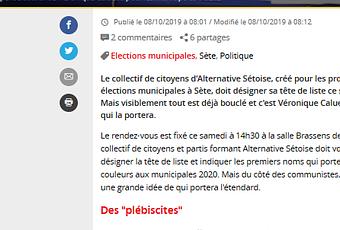 MERCI au Midi Libre de me proclamer élue avant le vote de l’assemblée populaire. D’autant que, restant le seul journal édité sur la ville, les sétois sont obligés de vous croire.