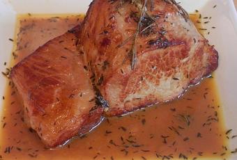 TAGS : viande, rôti de porc, porc, miel, orange, vin blanc, cognac, romarin, thym