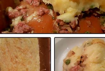 - Déposer la purée sur la viande et l'étaler uniformément. Répartir le fromage râpé à la surface.