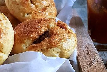 - Étaler une petite boule et mettre au centre la compote de pommes caramélisées, puis refermer et former de nouveau la boule.