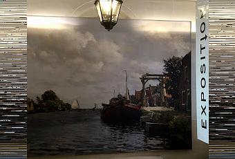 A gauche Vivier flottant de Paul Joseph Constantin Gabriël qui est le seul tableau exposé qui ne soit pas de Tholen. Les deux peintres faisaient souvent des excursions ensemble dans le Nord-Est en empruntant un petit bateau pour peindre des paysages de tourbières. Il est possible que Gabriël ait fait cette esquisse à l'huile lors d'une de ces sorties. Il a représenté un abri de pêcheurs, une simple toile tendue entre des bâtons, ainsi qu'un vivier flottant en bois pour les poissons. Tableau exécuté sans doute en plein air. [hors catalogue]A droite, Petit pont à Giethoorn, 1884Tholen visitait Giethoorn surtout en été ou au début de l'automne quand le village était plus facile d'accès. Beaucoup de ses vues de Giethoorn se caractérisent par des couleurs vives et ensoleillées. Ici, Tholen a peint un petit pont en bois. Dans le village, où pratiquement tous les déplacements se faisaient par bateau, les ponts devaient être particulièrement hauts pour permettre le passage des barques remplies de foin. La lumière d'été illumine le pont et accentue les différentes nuances de couleurs du bois utilisé pour sa construction. [cat. 11]