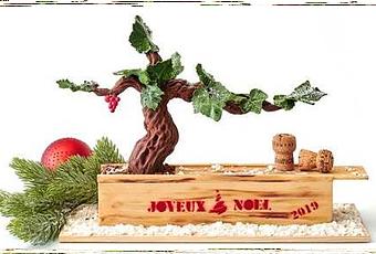 Le voyage commence par une vigne aux formes oniriques - partie supérieure de la bûche - une création intense aux saveurs décuplées.