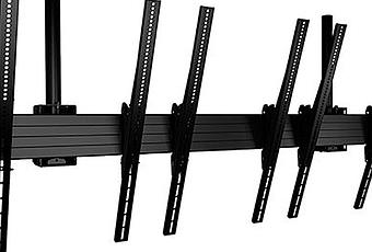 Le rail accueille ensuite ses trois supports indépendants faits de deux rails verticaux à multiples emplacements VESA. Le LCM3X1UP accepte trois moniteurs de 40 à 55 ». Ils ne devront pas excéder 57 kg chacun. Les rails sont orientables de +5 à -20° pour une orientation idéale.