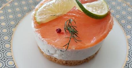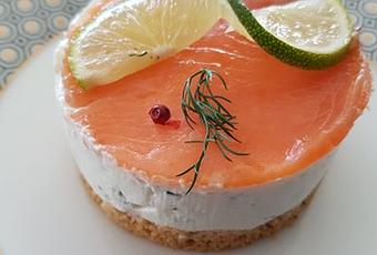 Disposez élégament un morceau de saumon fumé. Parsemez d'une goutte de citron, de sésame et d'un brin de ciboulette.