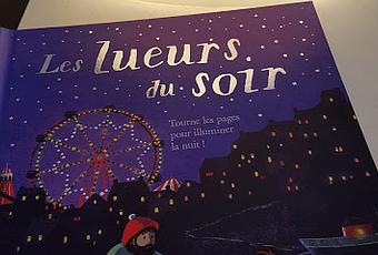 Quatrième de couverture : Découvre les lueurs du soir dans cet album magique, où les illustrations s'illuminent quand tu tournes les pages ! Rejoins une petite fille qui rentre de la pêche à la nuit tombée avec son papa. La nuit est noire et pourtant le clair de lune danse sur la mer, les étoiles scintillent et le phare guide la petite barque dans la tempête... Superbement illustré, cet album animé est idéal pour l'heure du coucher.