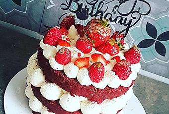 Pour l'anniversaire de ma fille j'ai réalisé un RED VELVET Cake que j'ai fourré d'une chantilly mascapone vanillé et garni de fruits rouges frais à chaque étage... hummmm ultra gourmand et ultra booon...