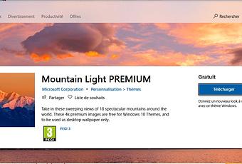 Pour les amoureux de la montagne, Microsoft met à disposition un nouveau thème pour Windows 10, disposant de vues panoramiques sur 18 montagnes assez spectaculaires, en provenance du monde entier. Ces images premium 4k sont gratuites pour Windows 10 et ne doivent être utilisées, par respect de la propriété intellectuelle (copyright), que comme papier peint du bureau Windows...