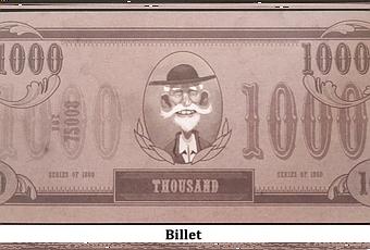 Récupérez 8 Billet de 1000$, 10 jetons Chapeau de votre couleur, 1 jeton Duel et 2 cartes Objectif Personnel que vous regarderez secrètement. Les cartes restantes non consultées iront dans la boîte 😉 et les billets restants pour la Banque.