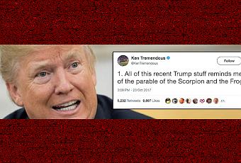 Cela m'a rappelé ce conte russe de la grenouille et du scorpion, dans lequel - vous l'avez deviné - Donald Trump est le scorpion: