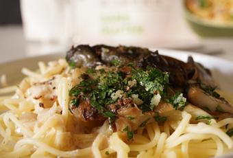Spaghettis de maïs aux cèpes, sauce au vermouth