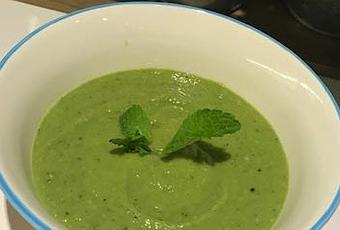 - Ôter les feuilles de menthe en conservant uniquement 6 ou 7 feuilles pour les mixer avec les petits pois et le bouillon restants.