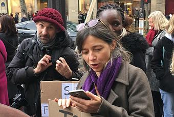 Ça a démarré à 15h30 et voilà le soleil !!! Je réécris tout... car je suis mécontente de mon précédent article posté. Je voulais prendre que des photos et puis mon portable m’a lâché : plus de batterie alors je me suis mise à noter dans les marges d’un tract libertaire de Saint Denis tout... je me suis retrouvée dans cette solitude d’observatrice au milieu d’une foule porteuse non violente. Il y avait des femmes de tous les âges mais aussi des hommes motivés, j’ai dansé au son des tambours sur la place en attendant que cela bouge. C était aussi une foule composite cosmopolite des Russes des turques... les jeunes étudiants parlent tous plusieurs langues. J’ai vu aussi quelques blacks blocks pas inquiétés défilant aux côtés de tous les autres des organisations syndicales politiques tous exprimant leurs idées leur soutien et contents de le faire. Ensemble de toutes les villes de France nous étions 200.000 nous a-t’on annoncé...Sur le trajet j’ai rencontré Amélie Prévot comédienne elle aussi sans son compagnon, et Gaspard de la troupe de Macbeth, il était avec un groupe de musicos dont un jeune homme avec un tuba. Sur l’avenue qui menait aux fenêtres il y avait aussi un groupe avec une trompette, il entonnait cet air victorieux auquel on répond Olé Olé Olé et puis il y avait aussi une vieille dame à sa fenêtre qui faisait des grands cercles à tout le cortège avec un grand tissu violet. Vers 18h j’ai pris le métro à Charonne pour rentrer Pascal commençait à s’inquiéter. Il avait fait le lit les courses et m’avait appelé plusieurs fois...