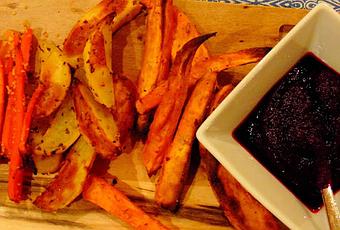 Les "frites" sont bien sûr cuites au four nappées d'un chouïa d'huile d'olive.