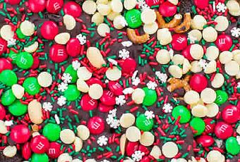 Une fois c'est fait, saupoudrez le tout avec vos bonbons M&M's pépites chocolat blanc et pépites sucrées.