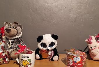 La peluche sac à dos, la tasse des célèbres livres madame/monsieur, le panda, le sac rose et sa licorne tous remplis de délicieux chocolats sans oublier les cannes à la fraise douces et fondantes et bien moi, je n'y résiste pas ! Tout ce qui aux enfants plait et réunis sur cette photo et ne coûtent que quelques dizaines d'euros.