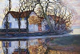 Salomon Slijper apprécie particulièrement l'œuvre de jeunesse de Mondrian. Ses premiers paysages rappellent l'école de La Haye, un groupe de peintres néerlandais influents, recherchés des amateurs locaux et dont la démarche rejoint en partie celle des français de Barbizon. Les motifs du moulin et de la ferme à Duivendrecht, un village proche d'Amsterdam, s'imposent durablement dans l'œuvre du peintre et révèlent, à travers leur composition épurée, un intérêt précoce pour les horizontales et les verticales. Captés au crépuscule ou par temps de brume, ces " paysages atmosphériques " se distinguent par une palette sourde qualifiée, à l'instar de celle de ses ainés, de " peinture grise ". Les très petits formats sont considérés par l'artiste comme ses œuvres les plus personnelles. A travers ses panneaux, Mondrian ne cherche pas à dépeindre un instant précis mais l'expérience spirituelle de la nature. Bien que proche du motif, ces toiles dites " paysages intérieurs " attestent dès ses débuts de la démarche intellectuelle du peintre.