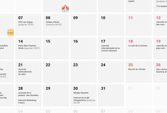 Chaque année, il fait son apparition ... l'outil favori des Community Manager ... le calendrier marketing ! Pour ceux qui ne connaissent pas encore cet outil, il permet de répertorier tous les événements incontournables de l'année à venir : journée nationales et internationales, événements culturels, commerciaux sportifs, etc. De quoi remplir votre planning éditorial pour l'année 2020 !